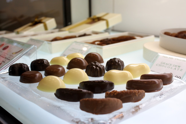 Minamoto Kitchoan offers a highly traditional Japanese cake and confectionery experience. The high-quality wagashi (a Japanese term for confectionery) is made using only natural ingredients - often entirely from plants. Treats are accompanied by a short description of the ingredients within. Once chosen, these are served with a complimentary green tea. Chocolate lovers can prepare to delight in the Chocolat Mochisyocramochi, comprised of pure chocolate wrapped in rice cake topped with cocoa powder. Traditionally Japanese in layout, the minimal white walls are complemented by clean-lined glass displays showcasing painstakingly prepared sweets. Japanese rock gardens, quirky mobiles and vivid kanji prints add an individual touch. As you would expect, take-home souvenirs come meticulously packaged.