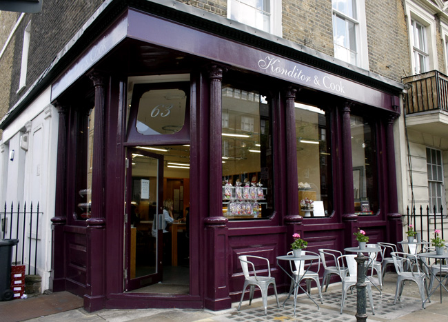 | With best-sellers including Curly Whirly chocolate vanilla cake and trademark double chocolate chip brownies, it’s no wonder Konditor & Cook has acquired a cult following. Founder and culinary innovator Gerhard Jenne has designed a collection Nigella Lawson describes as: “Fabulous cakes, the sort you’d make yourself if only you had the time, energy or inclination.” The Stamford Street shop is filled with decadent homemade treats including frosted sponge cakes, fruit tarts, tempting slices and magic cakes. Ornately packaged biscuits and a range of bespoke celebration cakes are also available. Committed to quality, organic ingredients are used where possible. The deep mulberry storefront and olde worlde decor within adds warmth. The hot chocolate combines Valrhona Couverture with double cream and is the perfect accompaniment to any treat. |