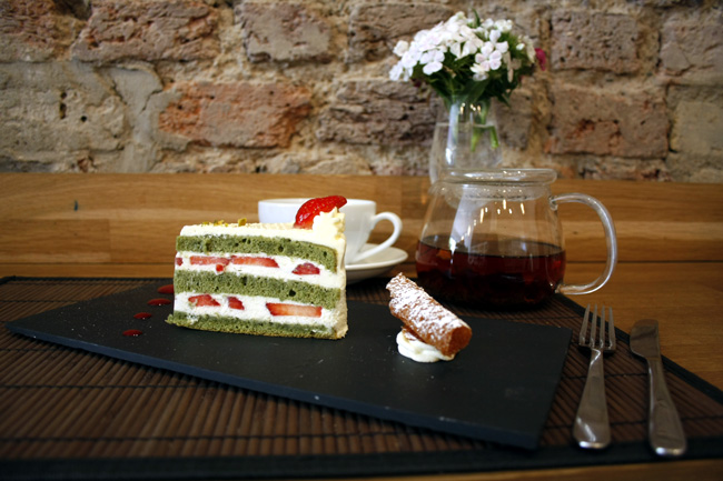 traditional French gâteaux, tarts, mousses and macarons are offered. Drinks including Monmouth coffee and loose-leaf teas imported from Sri Lanka complete the experience. |