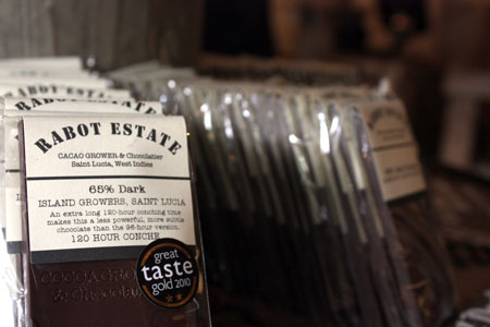 Rabot Estate is a cacao producer based on the Caribbean island of St. Lucia, and a chocolate shop and café nestled within the gastronomic hub that is Borough Market. Attracting foodies and chocolate lovers alike, the unique chocolate café boasts an innovative menu that is based on a variety of sweet and savoury cocoa-based wraps. A variety of chocolate drinks are also offered, including the award-winning drinking chocolate and cocoa tea. This is the latest chocolatier to be opened by Hotel Chocolat founders Angus Thirlwell and Peter Harris. Rustic in feel, the interior features reclaimed materials to replicate the weathered ambiance of a St. Lucian rum shack.